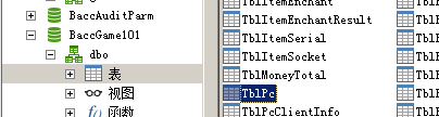 修改的第一步是找到你自己的账号id和角色id,账号id找数据库BaccAccount里的表TblAccount,角色id找数据库BaccGame101里的表Tblpc