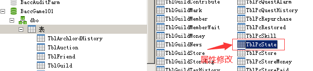 3.等级和经验修改,找到找数据库BaccGame101里的表TblPcState后,依照角色id和名称修改对应等级和经验数值
