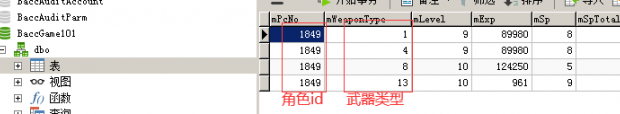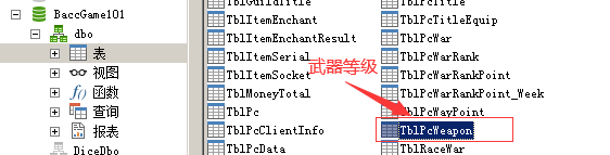 4.武器精通等级修改,找到数据库BaccGame101里的表TblPcWeapon