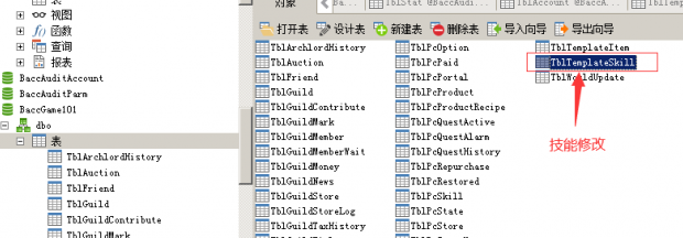5.技能修改,找到数据库BaccGame101里的表TblTemplateSkill,表里有各种技能的学习所需点数,想直接无敌的可以把后面所有对应的学习点数改成0,这样就能直接加满所有技能点了(但是不建议,因为技能树是看你消耗的技能点数解锁的,直接修改不消耗点数很可能导致没法加点)