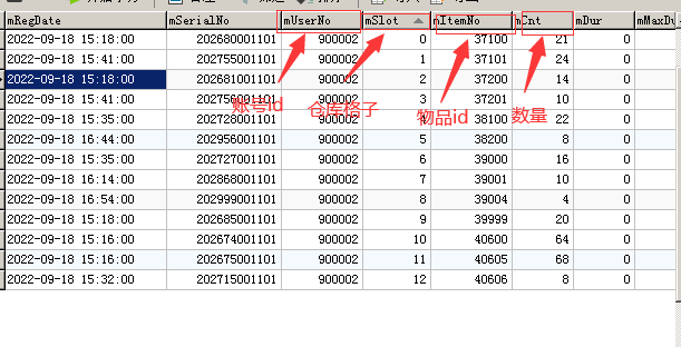 进去之后,先点选mSlot列升序排序,这样就是按照仓库格子来进行排列了,然后就可以按照自己的想法进行修改了,一共有两个更改思路:一个是直接在现有物品上直接替换(直接替换掉现有物品的id,然后将无法堆叠的物品如武器装备时装等的数量改为1)保存,这样你仓库里对应格数的物品就会变为你需要的物品;二是添加物品,直接在本页下方的按钮行上点击+号按钮插入行,然后点选第一列入库时间(选默认时间就行),第二列序列号(这个序列号是用来创建堆叠用的,比如仓库里某样物品的堆叠数量到达上限,仓库会自动创建另一个堆叠,这样物品id虽然相同,但是序列号不同,用来区分你移动和拆分的操作)直接输入一个位数相同但和其他本列物品不同的就行,第三列输入想添加物品的id,第四列输入想添加到的格子(仓库格子是从0-99,别写多了),第五列输入添加的数量(注意无法堆叠的物品一定要填1,不然可能导致无法进入游戏)