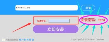 3.输入安装密码,点立即安装,安装密码在上面 安装密码: tera